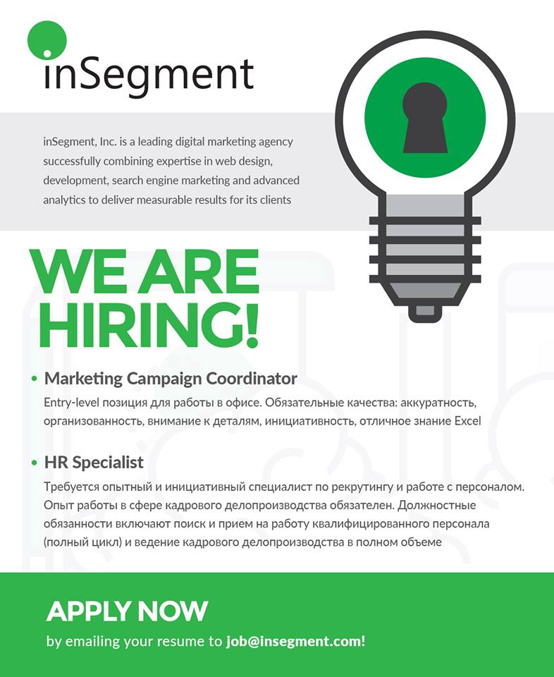 Резюме просьба присылать на job@insegment.com.
